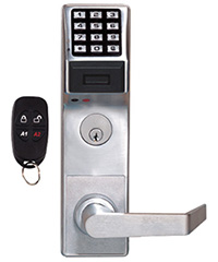 Alarm Lock's standalone Trilogy Locks provide safe, convenient keyfob-activated classroom lock-down, from safely inside the classroom, with a typical range of up to 100'. A favorite in K-12s, colleges and universities for their easy deployment and dependable, affordability, field-proven Trilogy locks are both advanced and rugged Grade 1. Starting with the cylindrical DL3200 or PDL3000, and Mortise P/DL3500 Series, each lock can support up to 50 tiny keyfobs, used with the Trilogy Remote Release Kit. This great feature-set can be incorporated within any new installation, replacing any standard lockset, or they can be easily field-retrofit to existing Trilogy PIN and/or Prox ID Locks, to add this lockdown campus security feature.